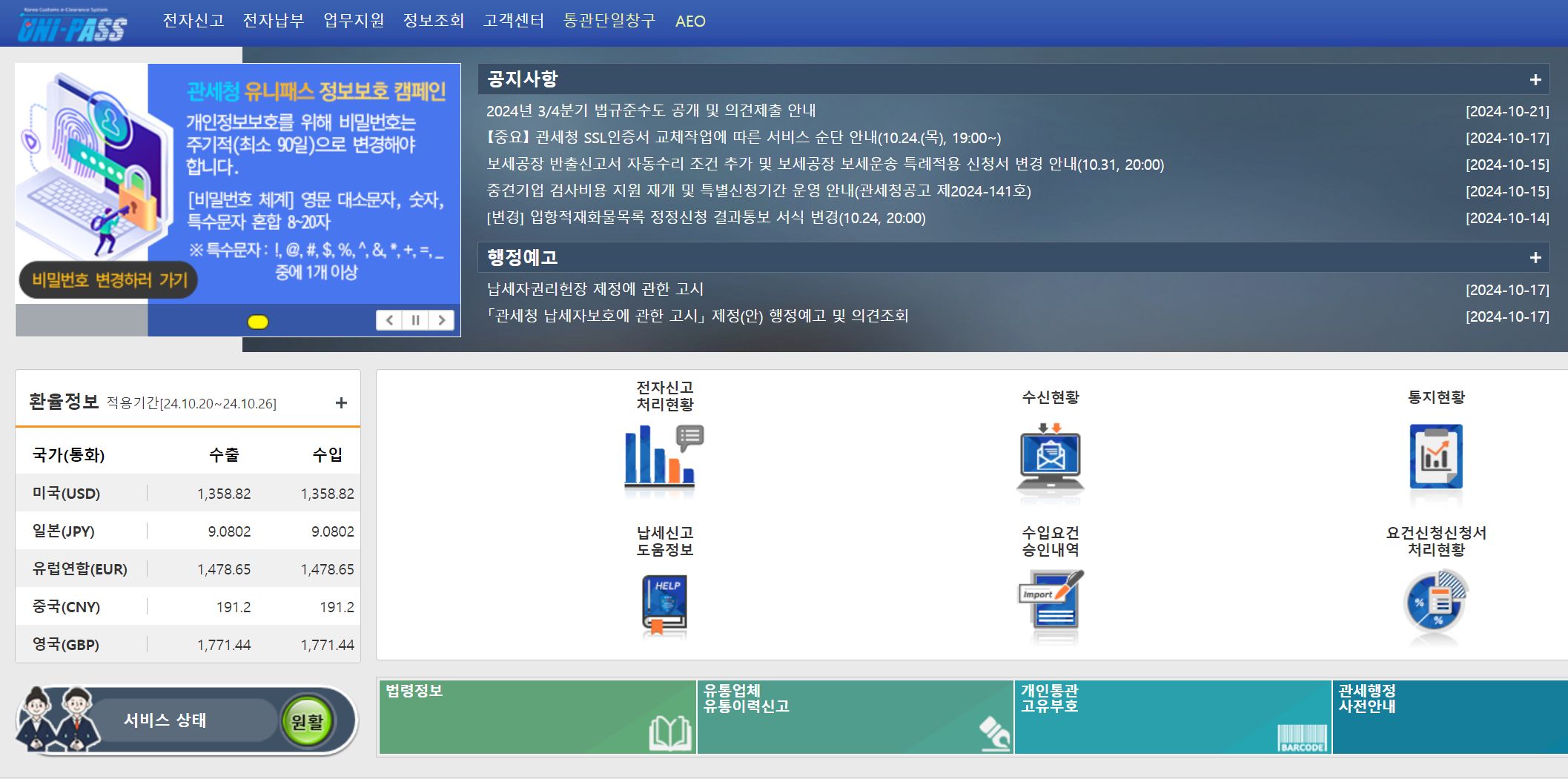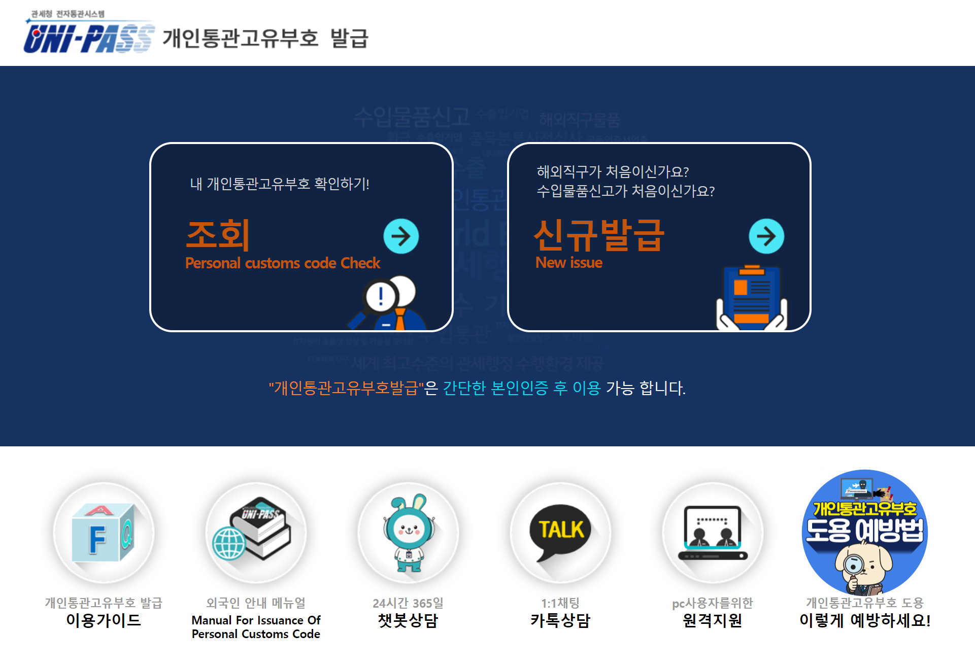 - 유니패스 홈페이지 접속 : 유니패스 홈페이지에 접속합니다.