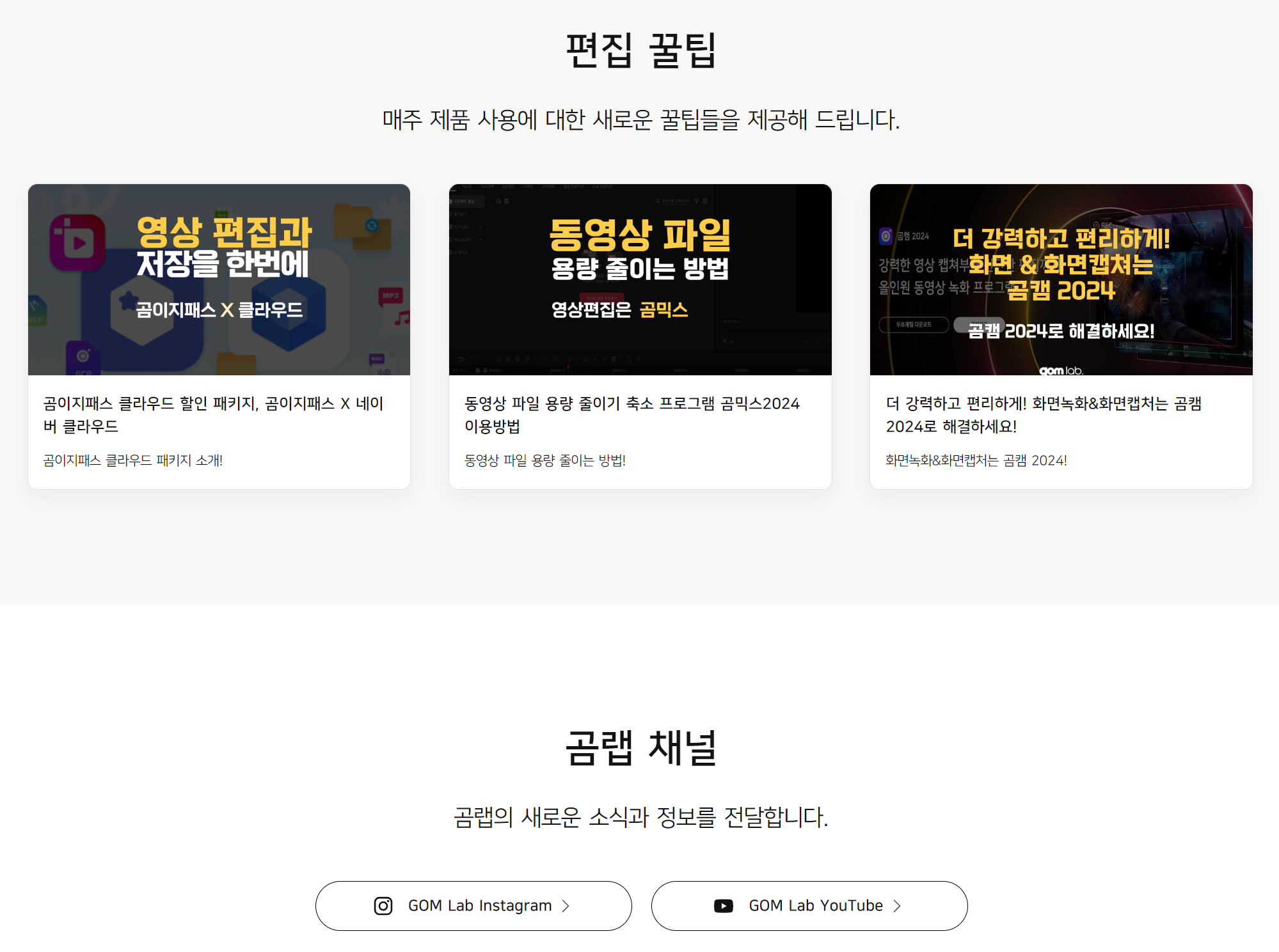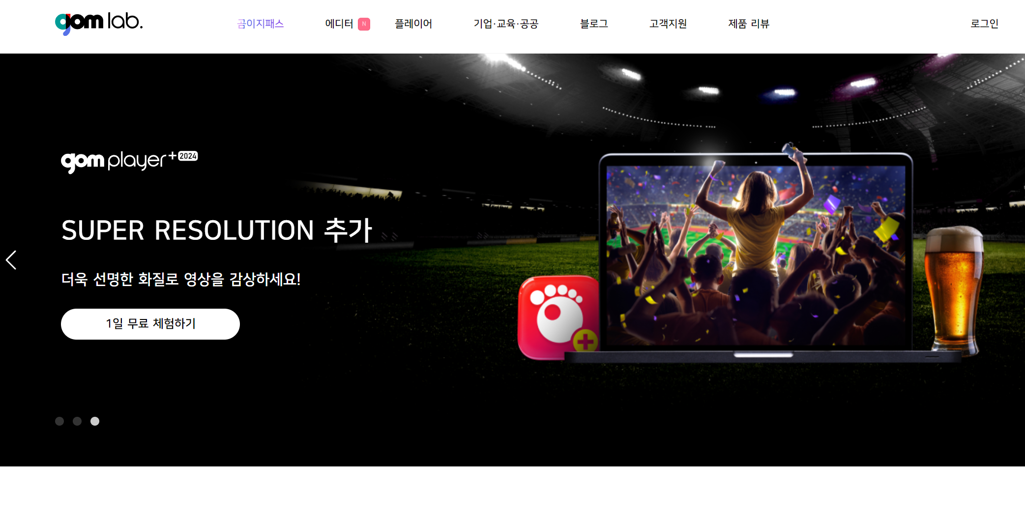 - 검색 결과에서 곰랩(GOM Lab) 홈페이지를 클릭합니다. (링크: 곰랩 공식 홈페이지)