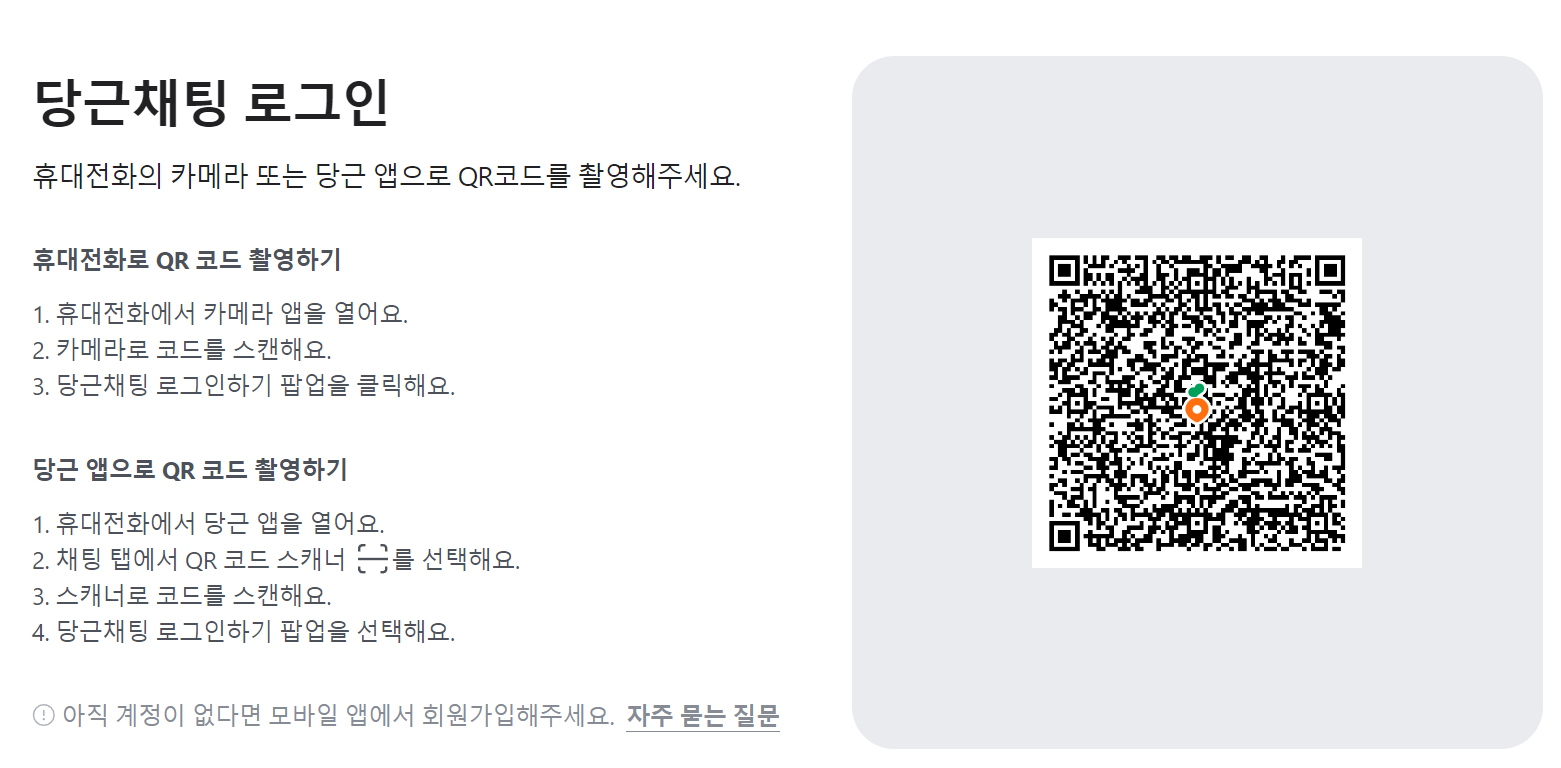 - 당근마켓 홈페이지로 가서 QR로 접속하기 (채팅위주로 사용시 이용)