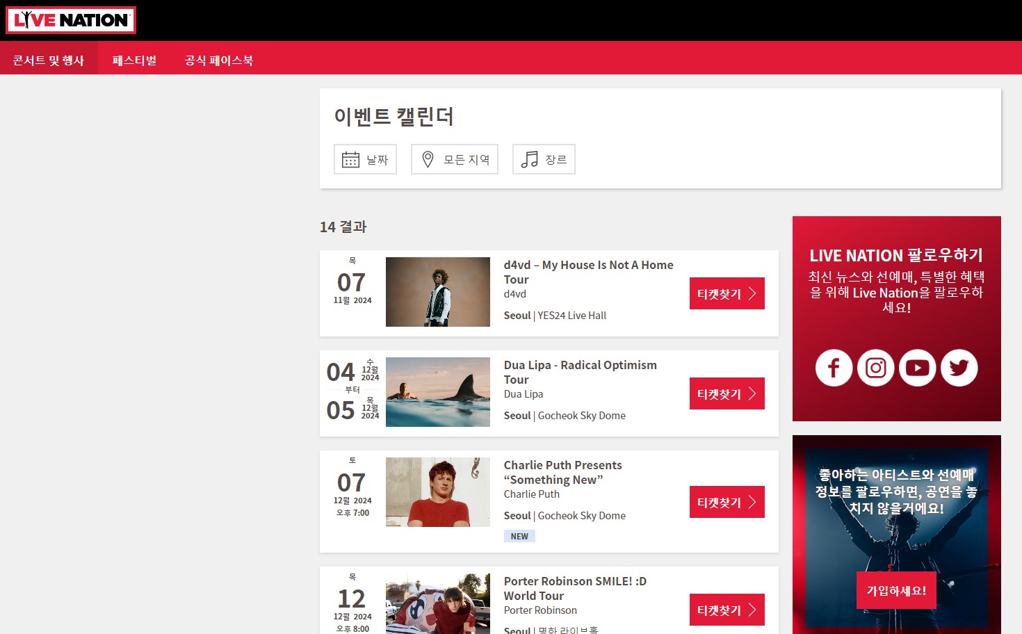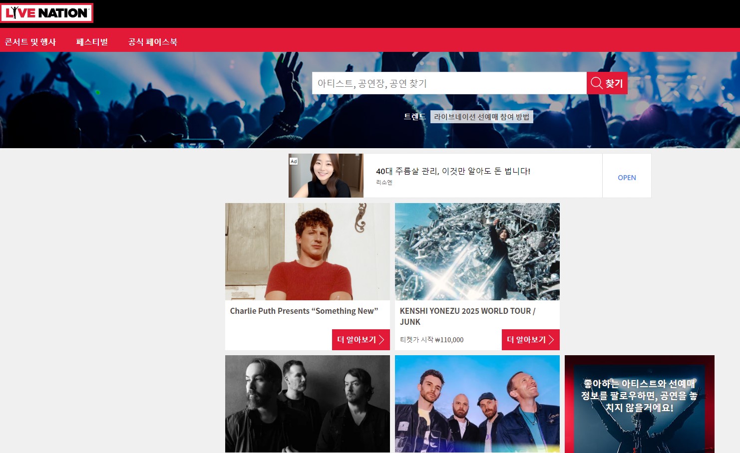 - 라이브네이션 홈페이지 로그인 : 라이브네이션 코리아 웹사이트에 로그인 합니다.