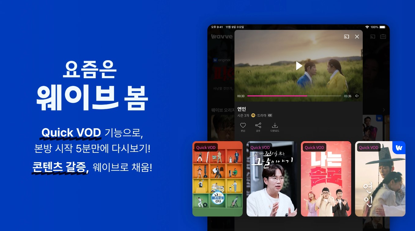 Wavve는 공중파, 종편, 홈쇼핑 채널을 포함한 다양한 채널을 시청할 수 있는 앱입니다. 회원가입 없이도 간편하게 사용할 수 있으며, 실시간 방송 외에도 다양한 VOD 콘텐츠를 제공합니다.