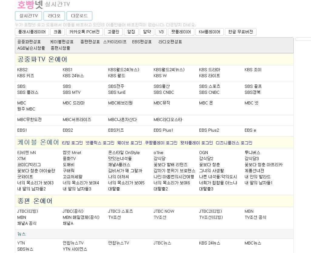 여러 채널을 한곳에서 쉽게 찾아갈수 있게 만든 사이트이며 다양한 장르의 TV채널을 로그인없이 바로 볼수있다는 장점이 있습니다.