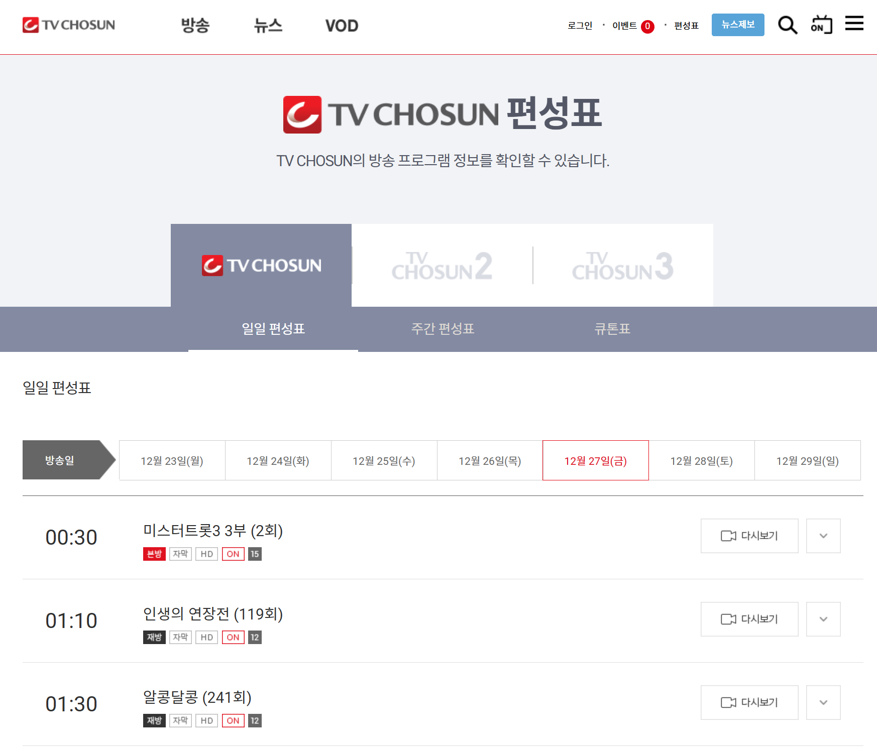 - 재방송 시간: 방송 다음 날 오전 10시, 오후 3시 (편성표에 따라 변동 가능)