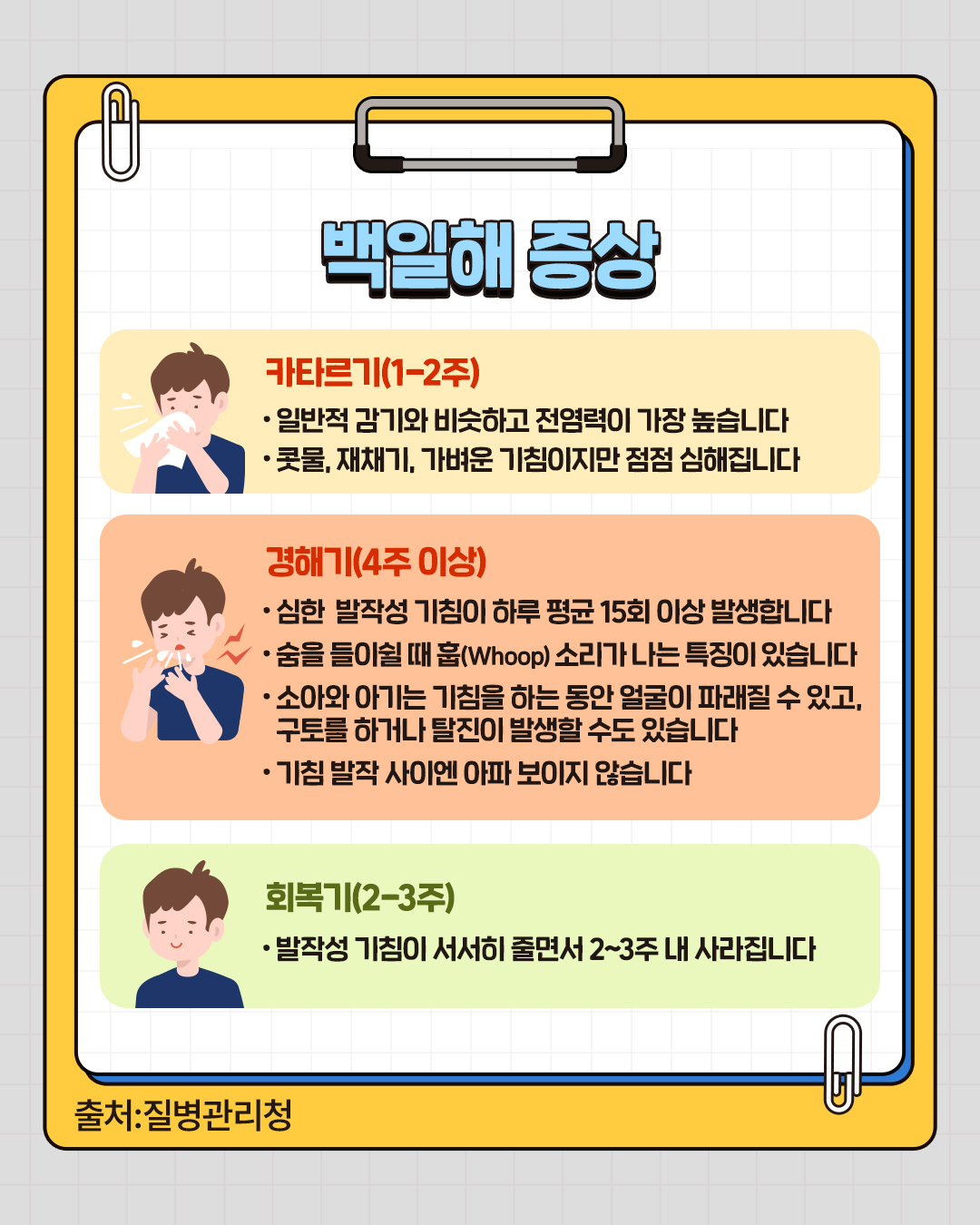 백일해는 보르데텔라 퍼투시스(Bordetella pertussis)라는 세균에 의해 발생하는 질병으로, 심한 기침과 호흡곤란을 유발합니다. 이 질병은 특히 영유아에게 치명적일 수 있으며, 기침이 심해지면 호흡이 어려워질 수 있습니다. 백일해는 전염력이 매우 높아, 감염된 사람의 기침이나 재채기를 통해 쉽게 전파됩니다.
