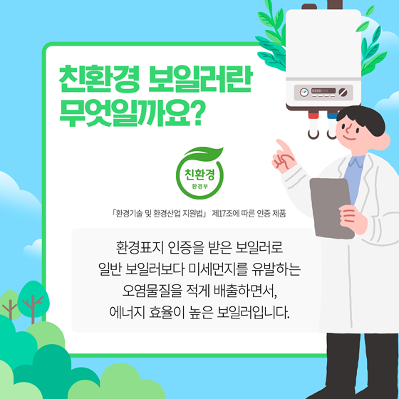 - 보일러 교체 : 기존의 노후 보일러를 친환경 보일러로 교체해야 합니다.