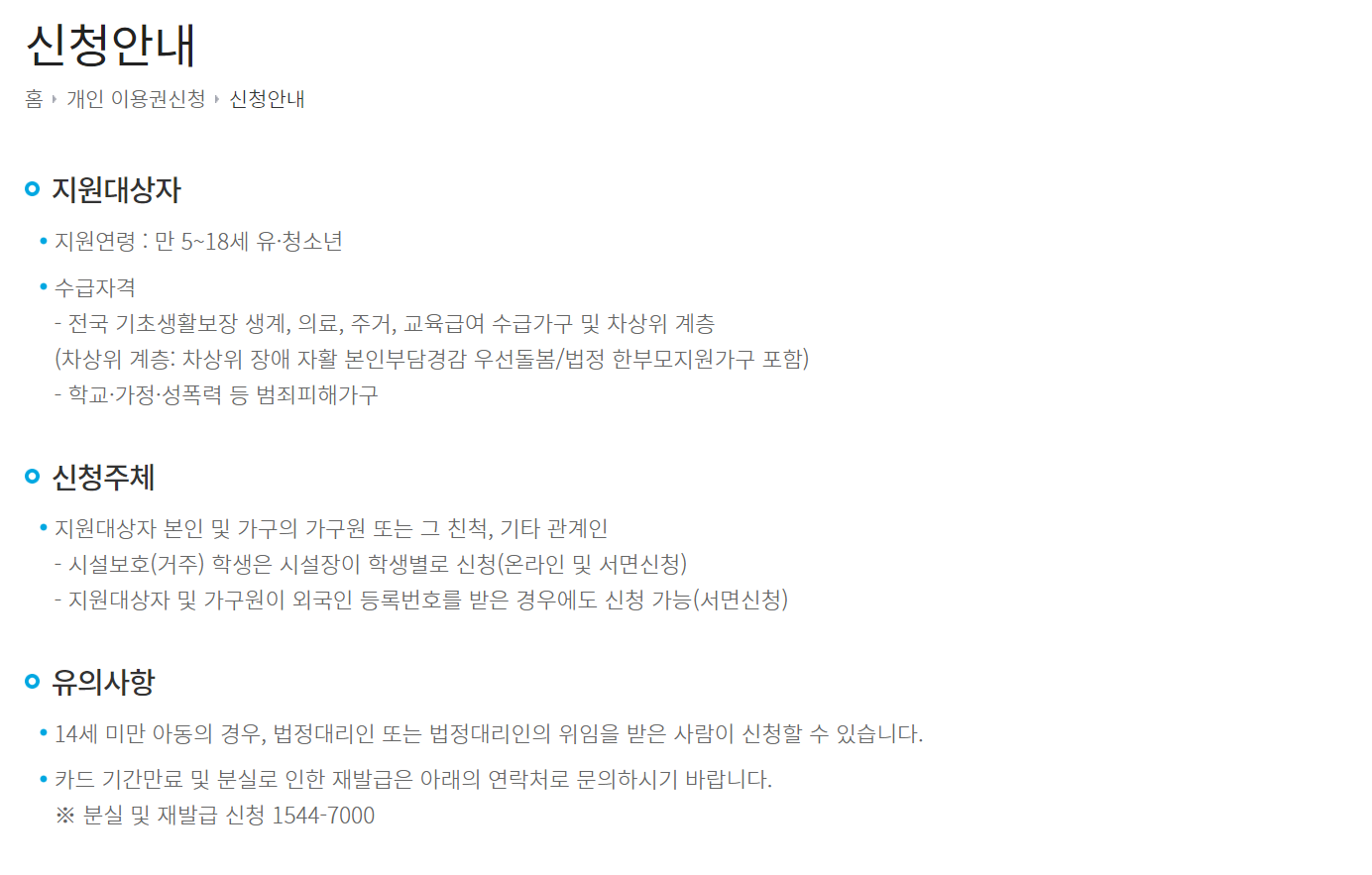 신청 시 유의해야 할 사항은 다음과 같습니다.