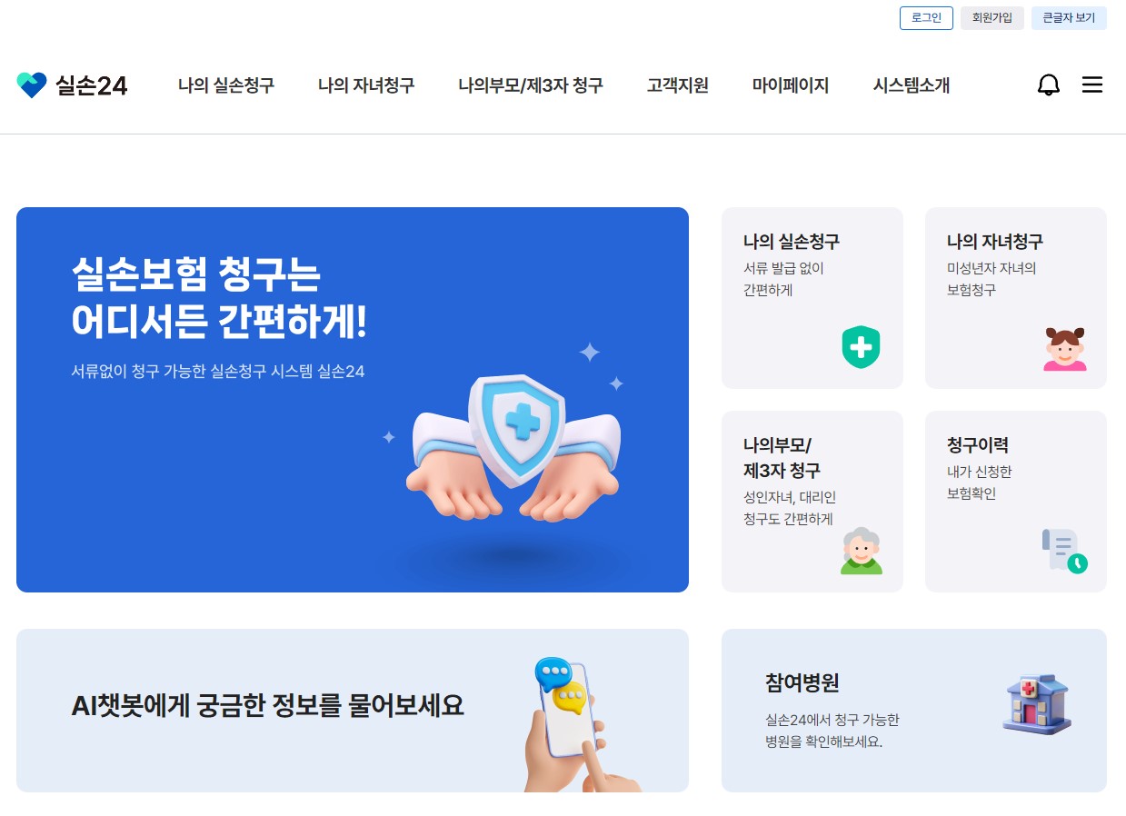 1. 웹사이트 접속 : 먼저 실손24 공식 웹사이트(silson24.or.kr)에 접속합니다.