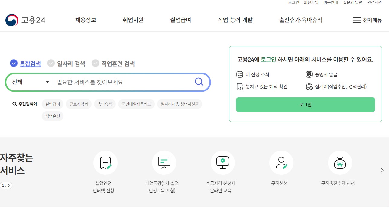 • 고용보험 수급자격 신청자 온라인 교육 수강: 고용24 홈페이지에서 온라인 교육을 이수해야 합니다. 이는 실업급여 수급에 필요한 절차로, 교육을 완료해야 다음 단계로 진행할 수 있습니다.