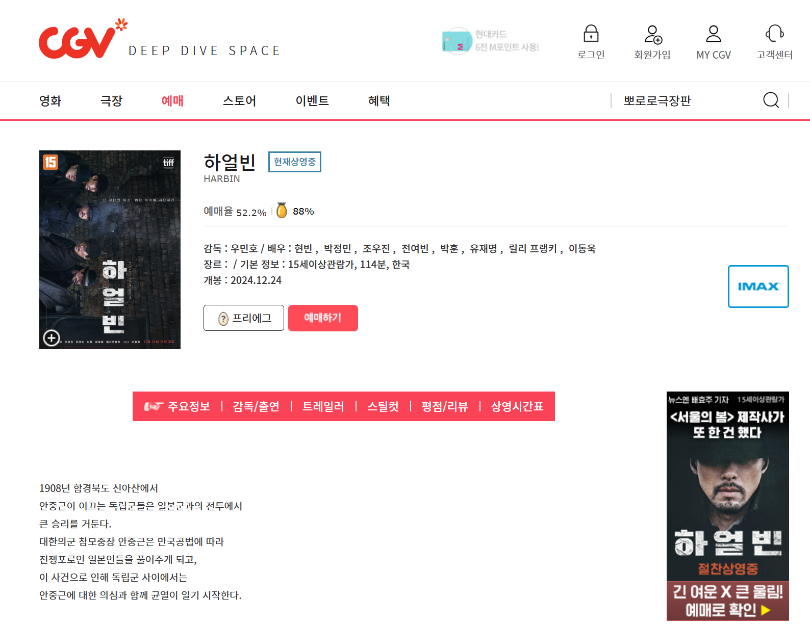 영화 '하얼빈' 완벽 가이드: 개봉정보, 예매 할인 방법 정리