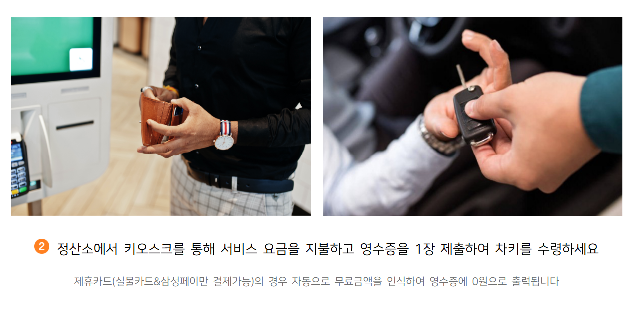 - 요금 지불: 주차대행 서비스 요금과 주차 요금을 지불합니다.