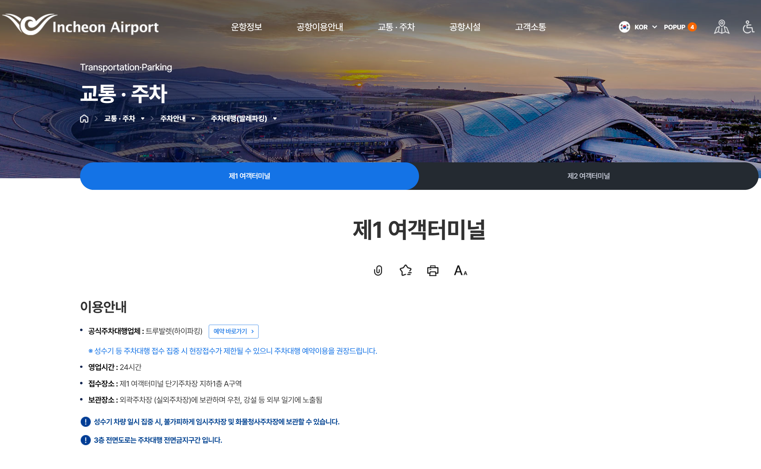 제1여객터미널 공식 주차대행 이용방법