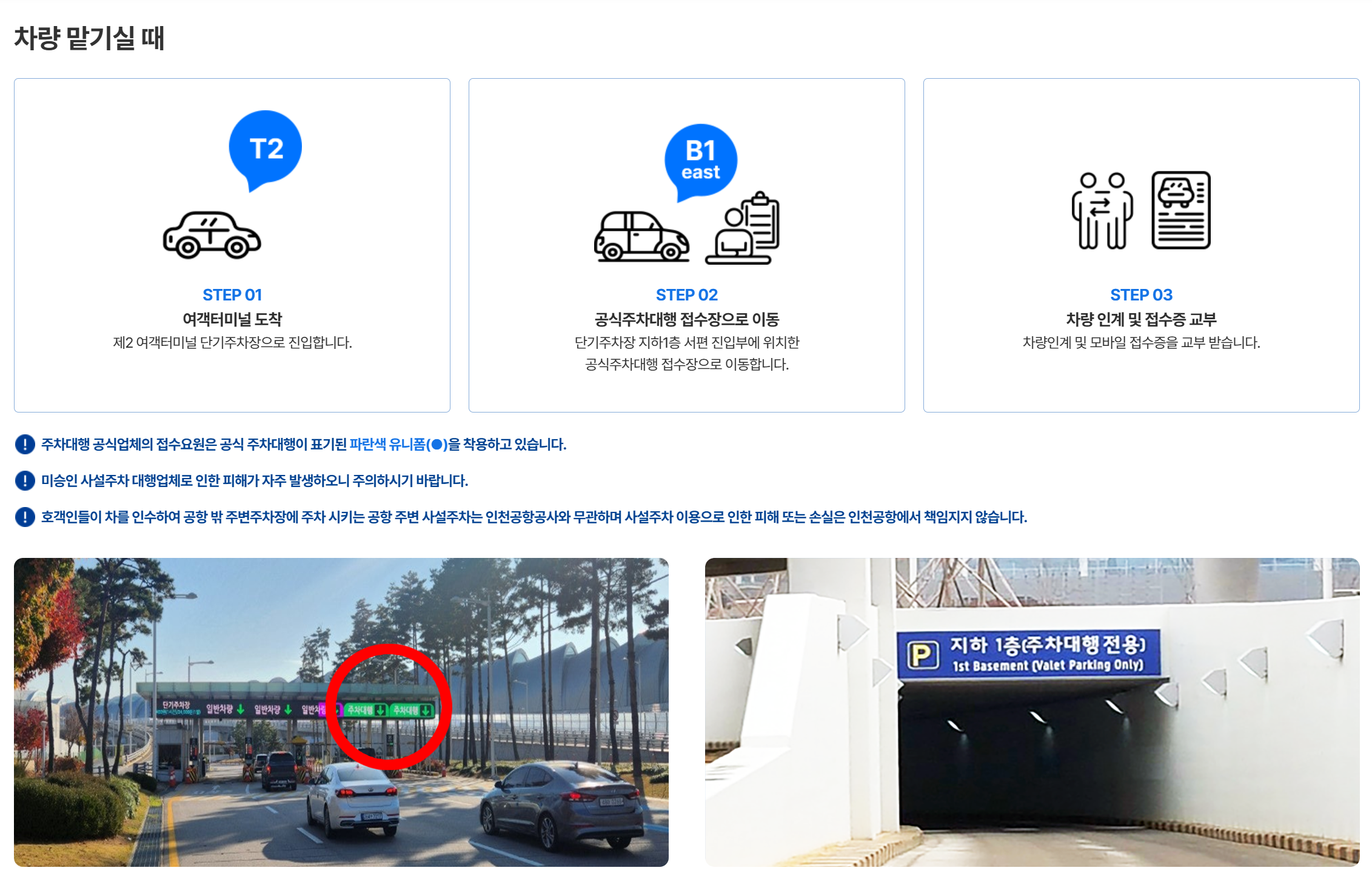 인천공항 제2여객터미널 공식 주차대행 주의사항