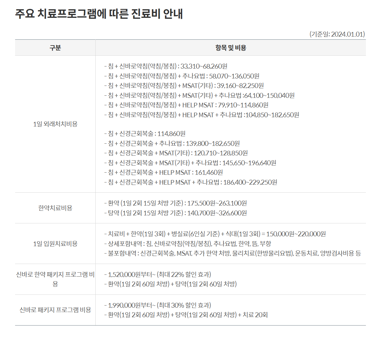 진료비는 환자의 상태, 치료 방식 및 횟수에 따라 다를 수 있습니다. 비급여 항목도 포함될 수 있으니 사전에 병원에 문의하여 자세한 비용을 확인하는 것이 좋습니다.