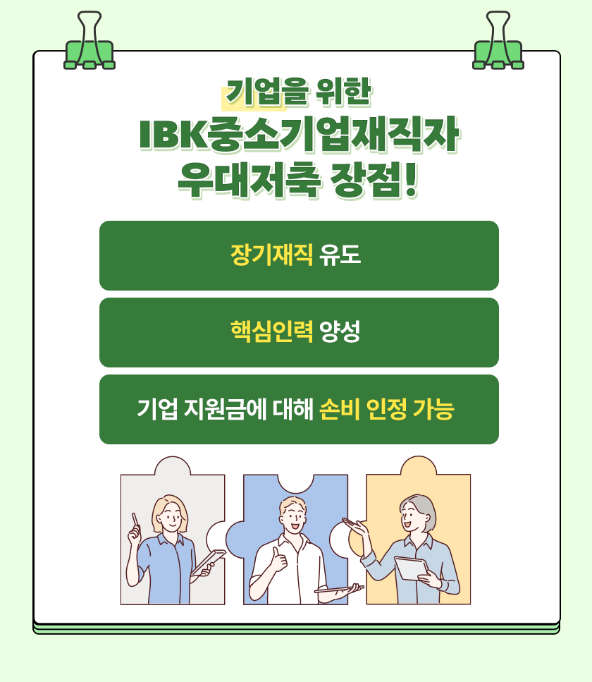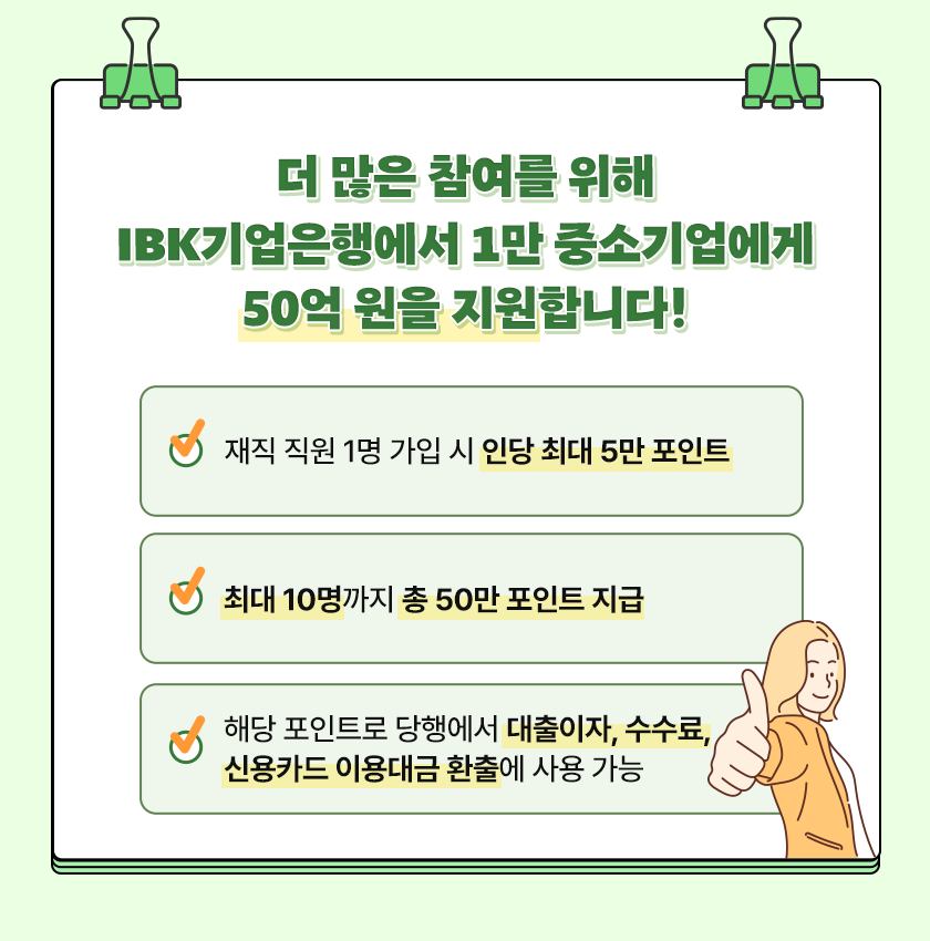 - 기업 우대상품 : 법정 의무교육 온라인과정 무상지원, 중소기업 대출 우대금리 등 많은 혜택을 제공합니다.