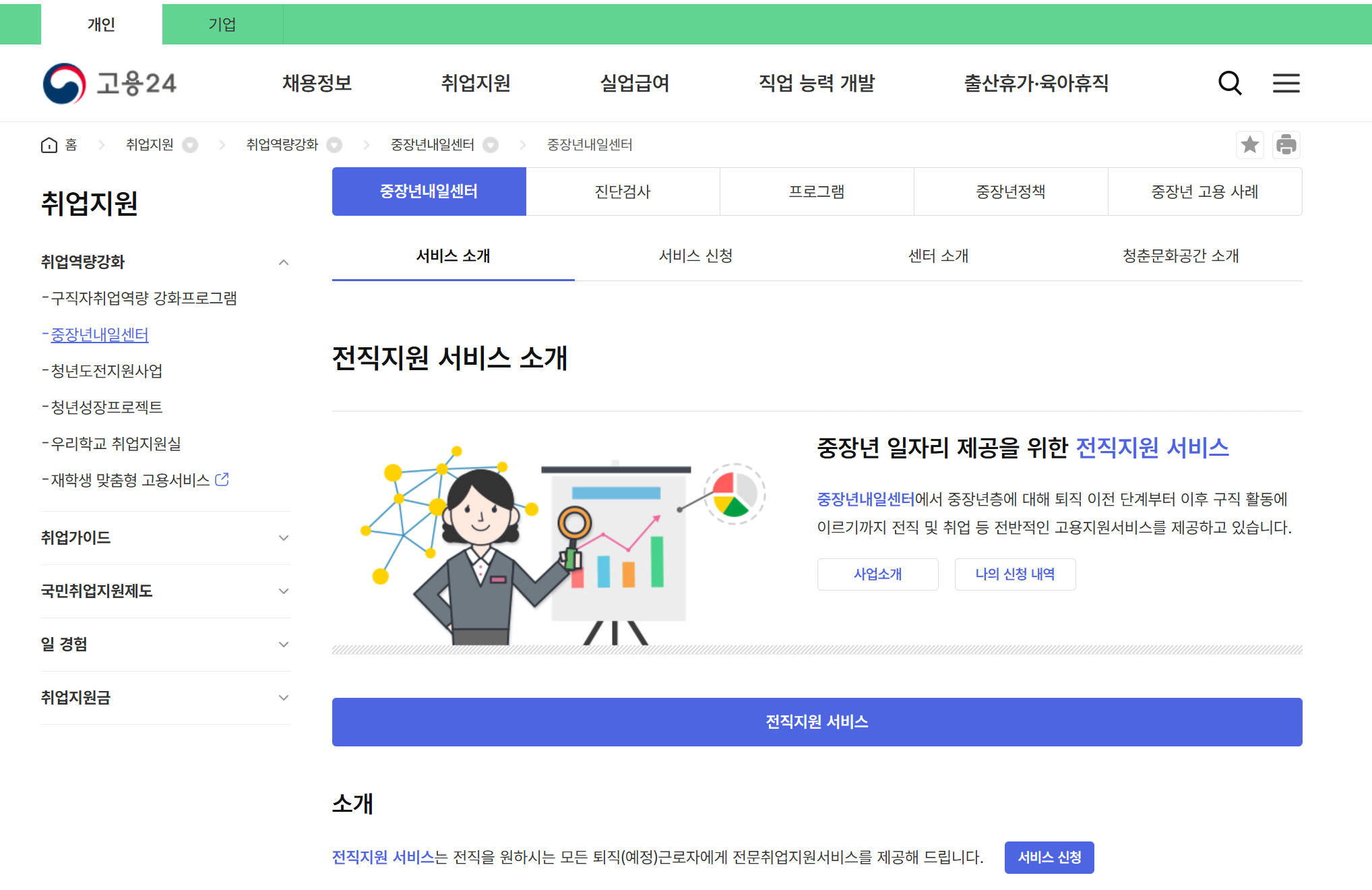 중장년 일자리 희망센터 지원대상, 신청방법, 프로그램 안내