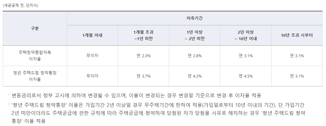 청년주택드림 청약통장 유의사항
