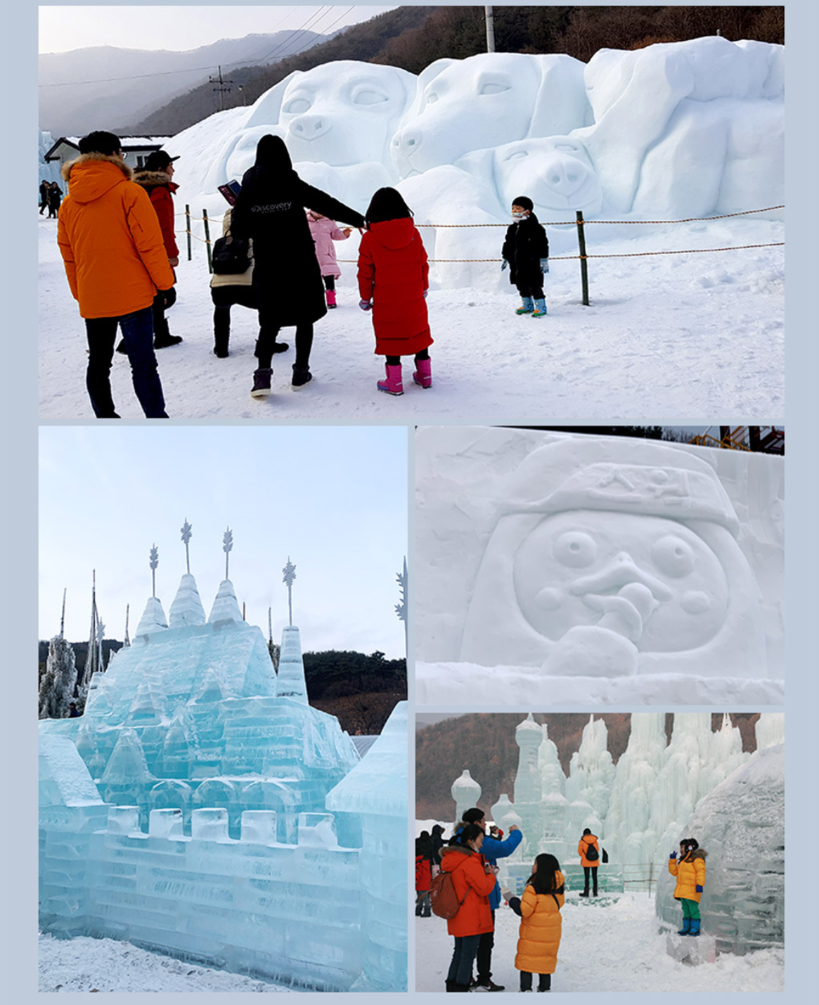 - 얼음분수 관람: 거대한 얼음분수와 다양한 얼음 조각 작품 감상