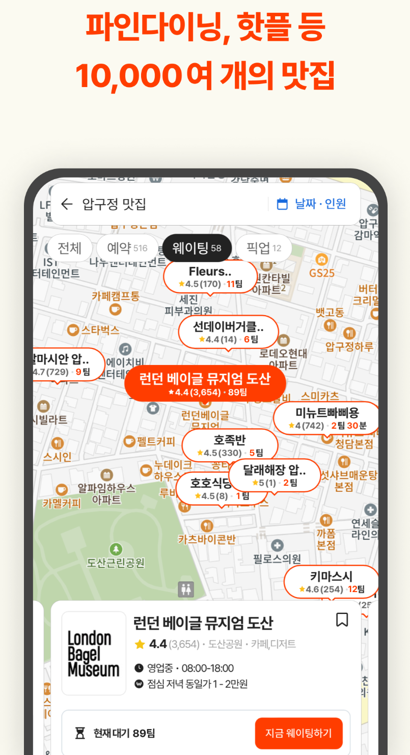 현재 웨이팅 정보가 실시간으로 업데이트되어, 대기 시간을 정확하게 알 수 있습니다.