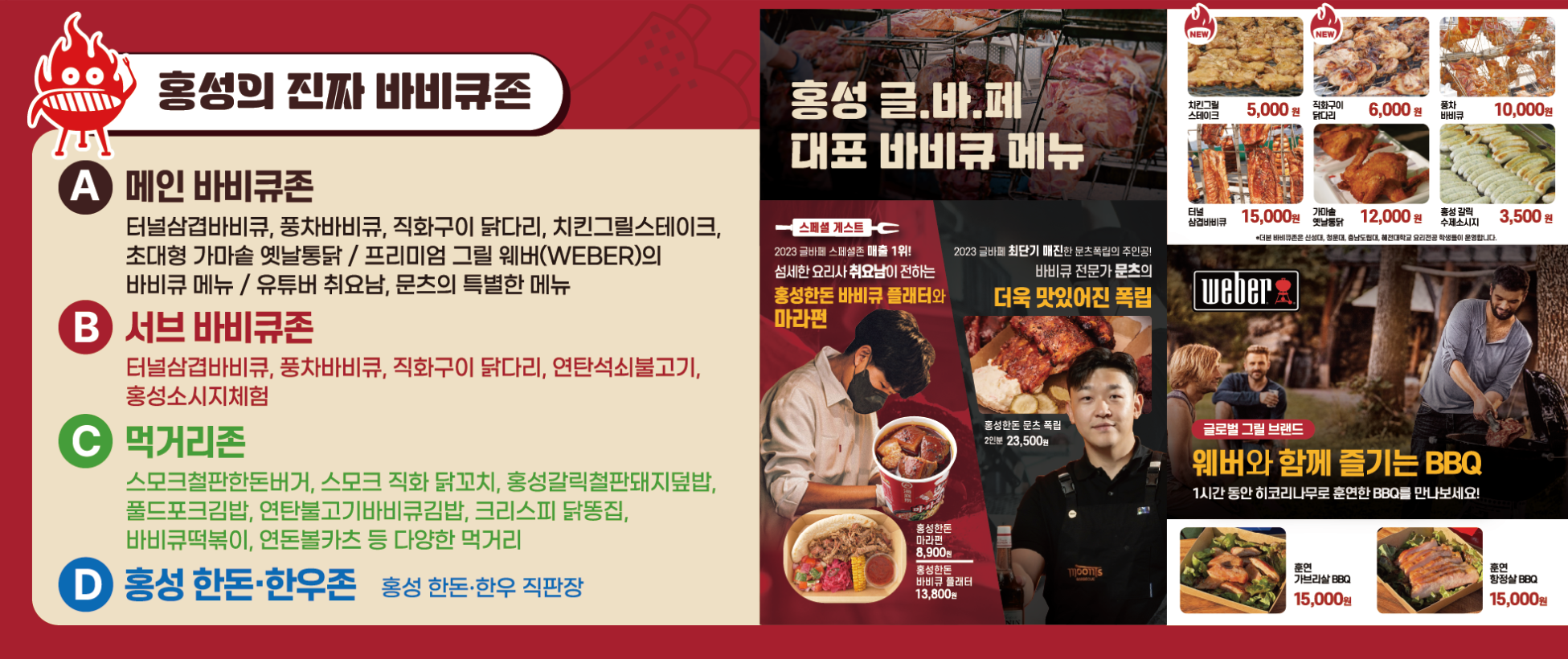 - 한우 바베큐 : 홍성의 신선한 한우를 사용한 바베큐는 부드럽고 풍미가 가득합니다.