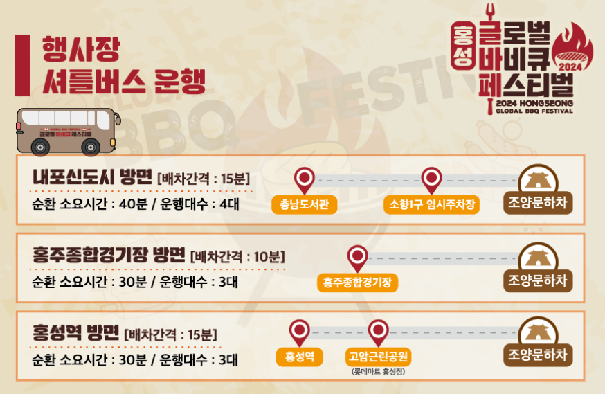 - 대중교통 : 홍성역에서 축제 장소까지는 버스나 택시를 이용할 수 있으며, 행사 기간 동안 특별 셔틀버스가 운영될 예정입니다.