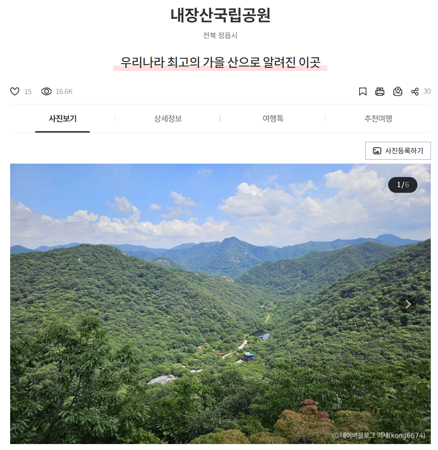 • 추천 코스: 내장사 입구, 케이블카 정상