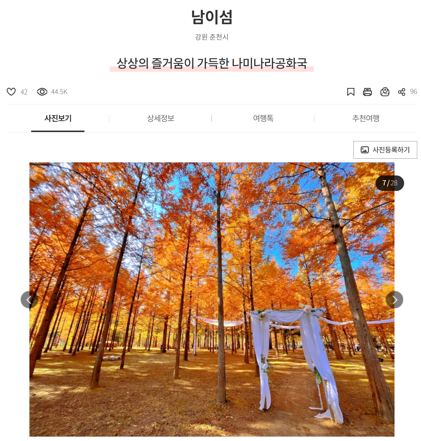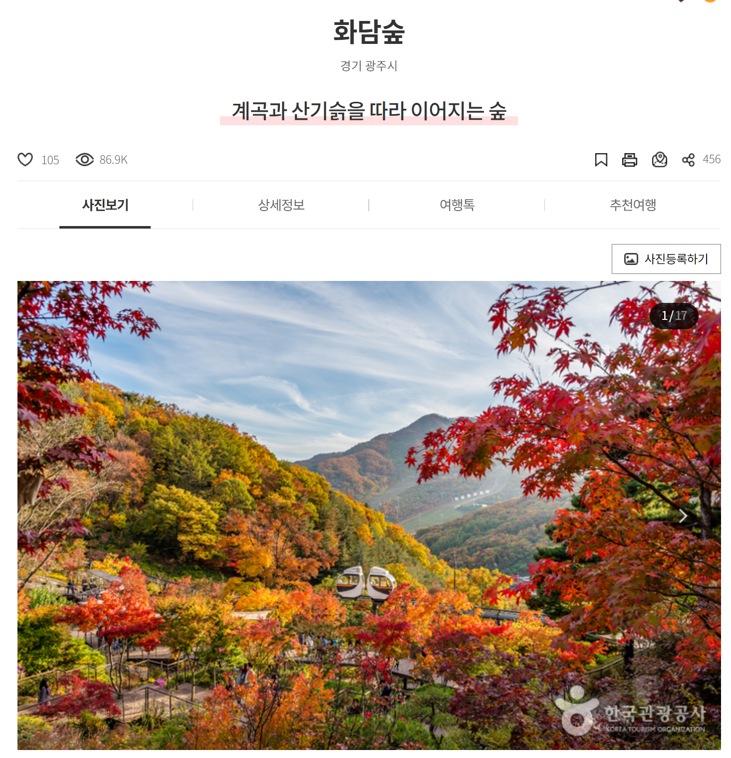 • 이용 팁: 주말보다는 평일 오전에 방문하는 것이 한적하게 단풍을 감상할 수 있는 좋은 시기입니다.