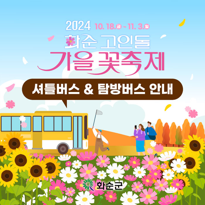 화순 고인돌 가을 꽃축제2024년 10월 18일부터 11월 3일까지 17일간 진행됩니다. 이 기간 동안 다양한 공연과 판매, 체험 프로그램이 마련되어 있어 가족 단위 방문객들은 물론 친구들과 함께 즐기기 좋은 축제입니다. 또한 10월 28일부터 11월 3일까지는 경관 관람형 축제로 일부 판매만 진행되니 참고하시기 바랍니다.