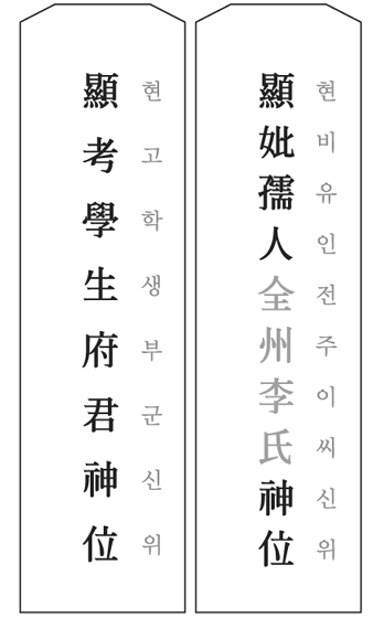- 네 번째 칸: "顯 (현)" 또는 "顯妣 (현비)" (할머니의 경우)