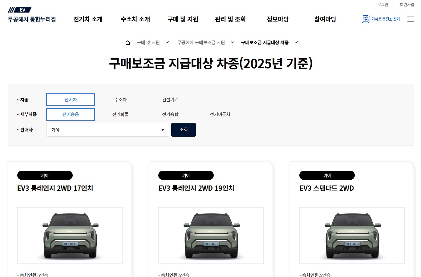 - 주행거리 기준: 1회 충전 시 주행거리 300km 이상 차량 우대