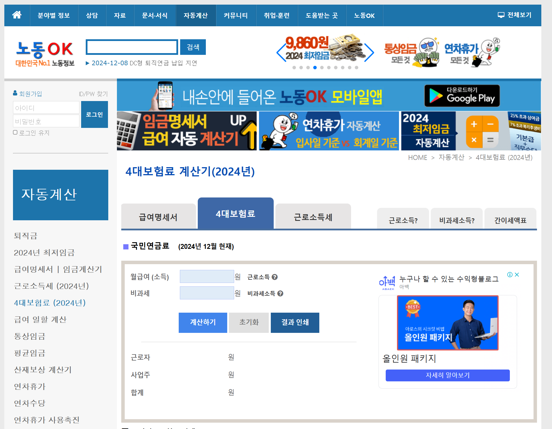 Q. 4대보험 계산기를 어디에서 사용할 수 있나요?