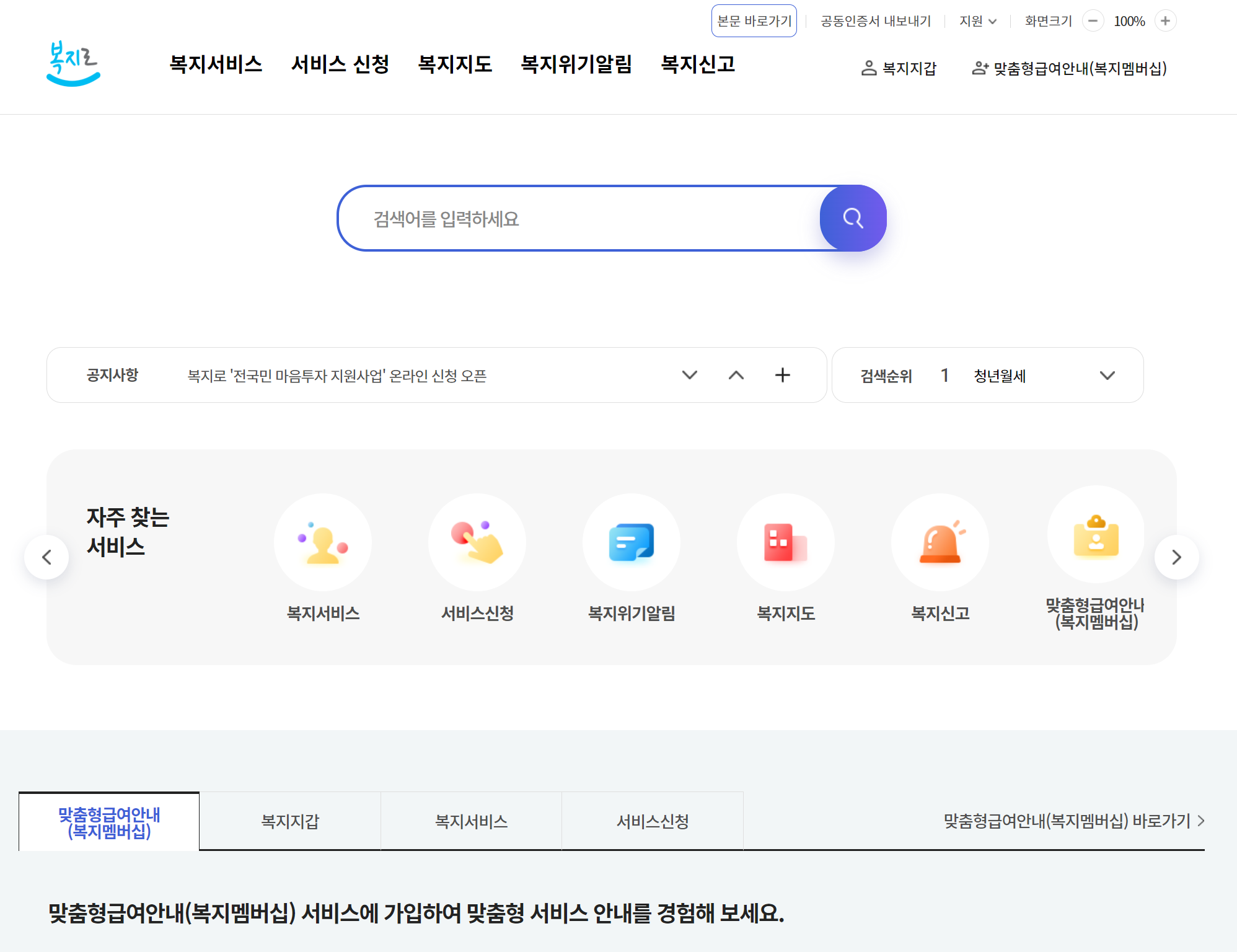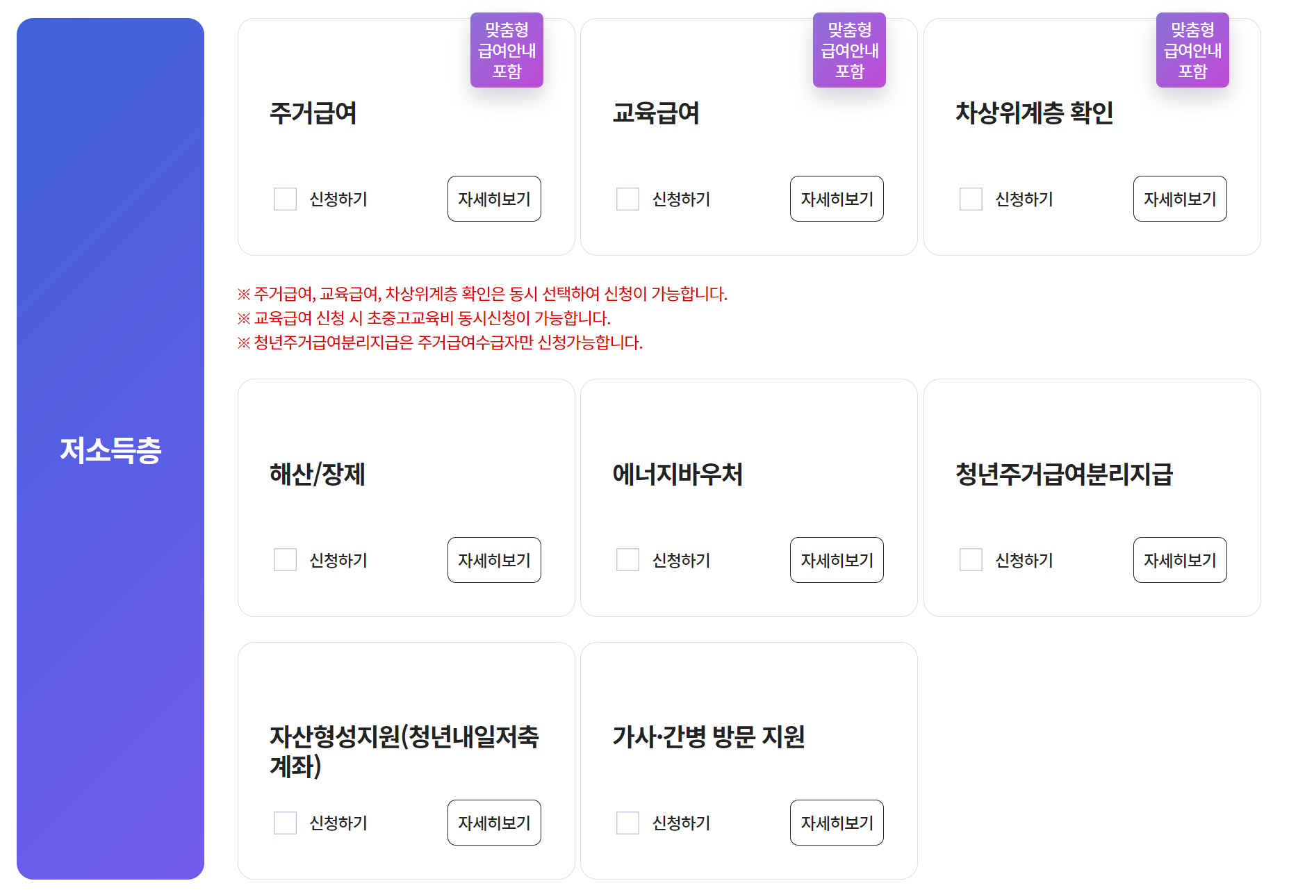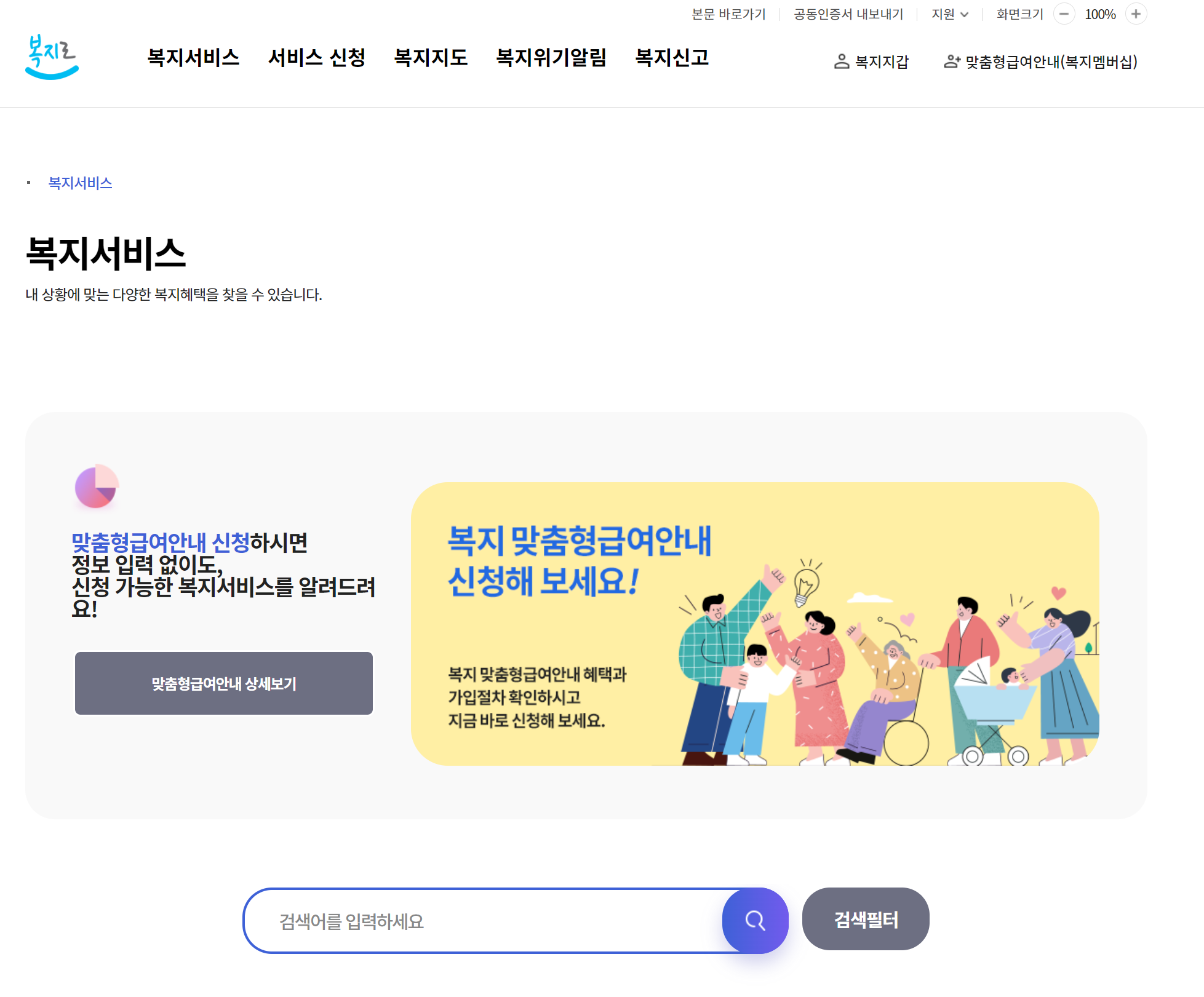 - 복지로 웹사이트(www.bokjiro.go.kr)에서 신청
